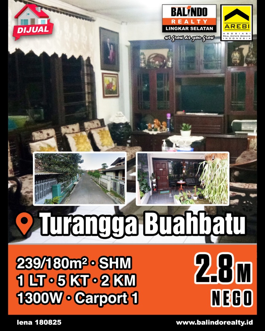 Rumah prestisius baru renovasi di Turangga, Bandung. Hunian elit dengan 5 kamar tidur dan 2 kamar mandi, LT 239m², LB 180m². Harga eksklusif: 2,8 Miliar. Fasilitas lengkap.